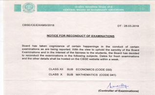 CBSE has decided against holding re-examination of Class X mathematics paper after conducting an evaluation of the answer sheets. An order announcing the decision regarding the same is likel ...
